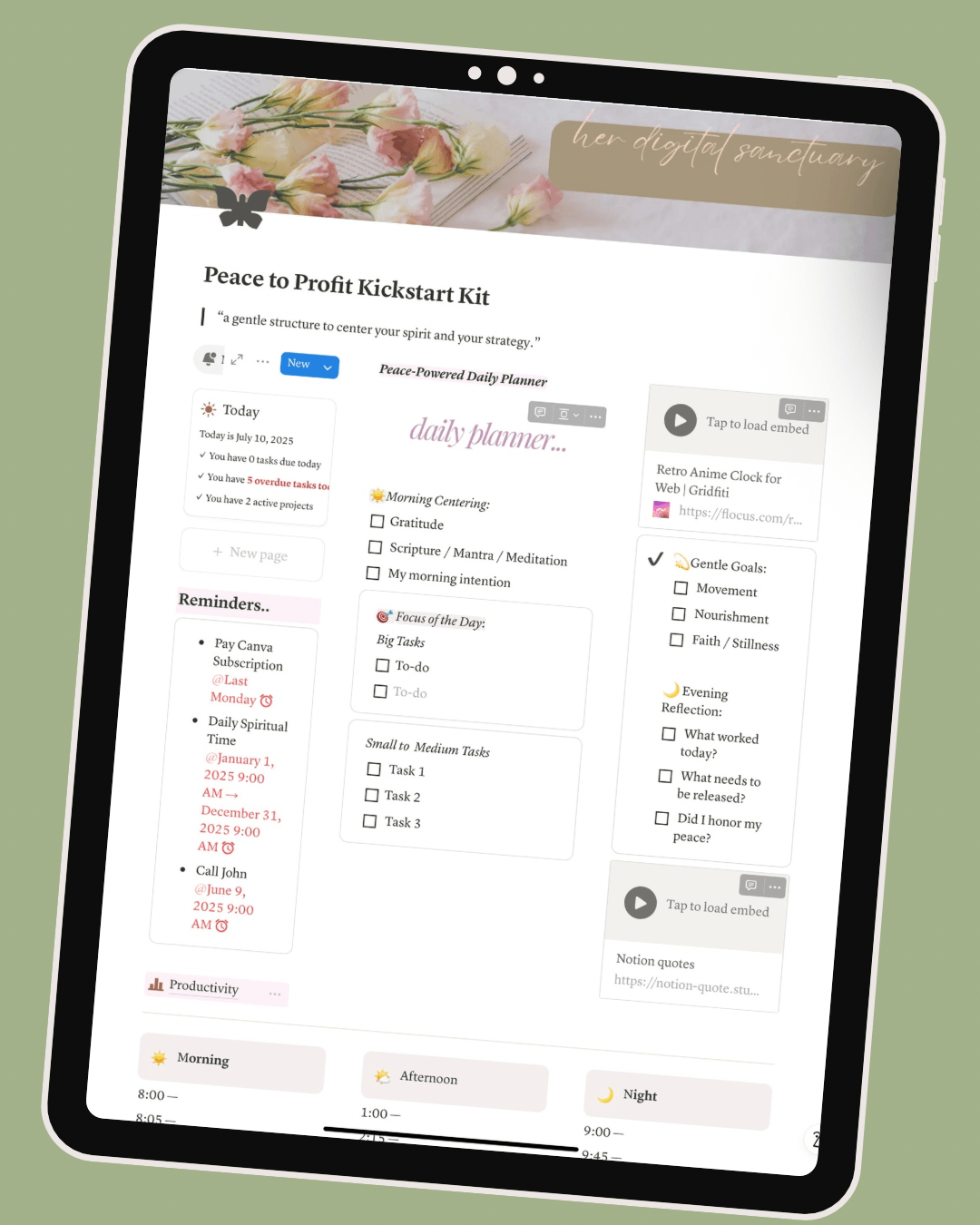 inside Notion, designed to help you reconnect with your daily rhythm while quietly laying the foundation for your peace and your profits.