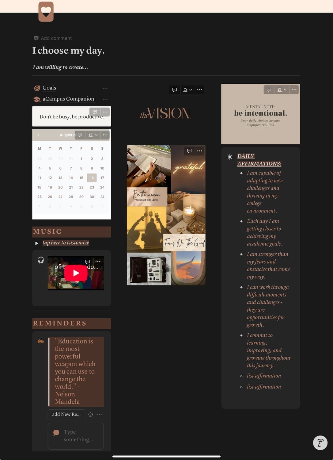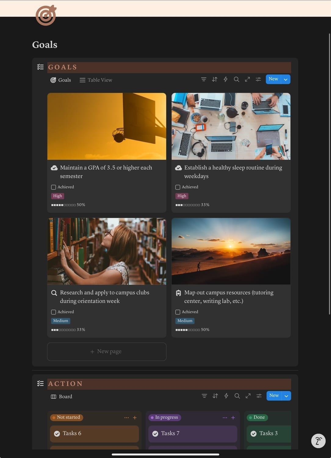 • Goals Section – Break down academic and personal goals into actionable steps you can actually complete.