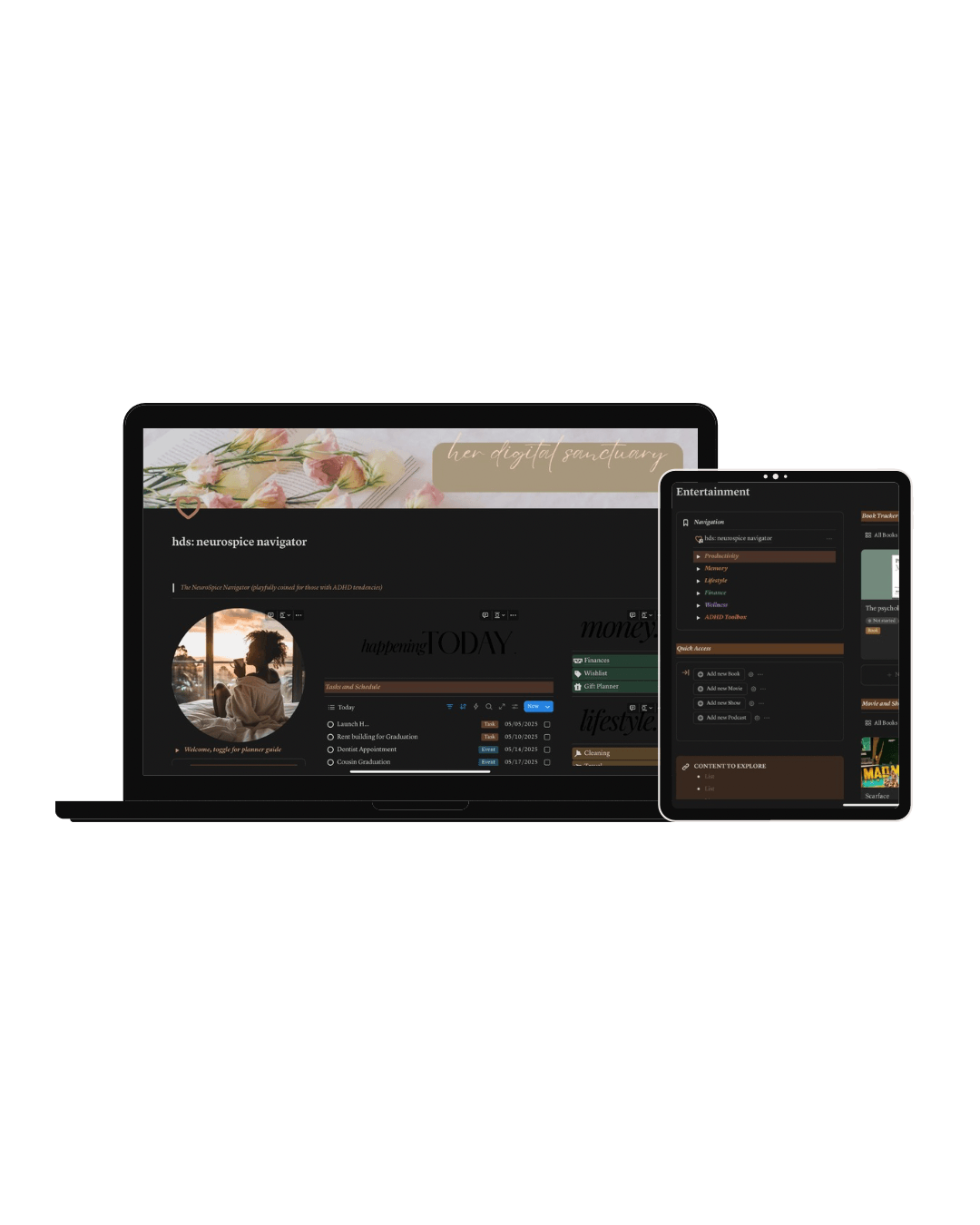 The NeuroSpice Navigator isn’t just a planner—it’s your digital co-pilot for navigating life with focus, flexibility, and a dash of fun. Built inside Notion and thoughtfully crafted for those with ADHD tendencies, this system helps you organize your world without boxing in your creativity.