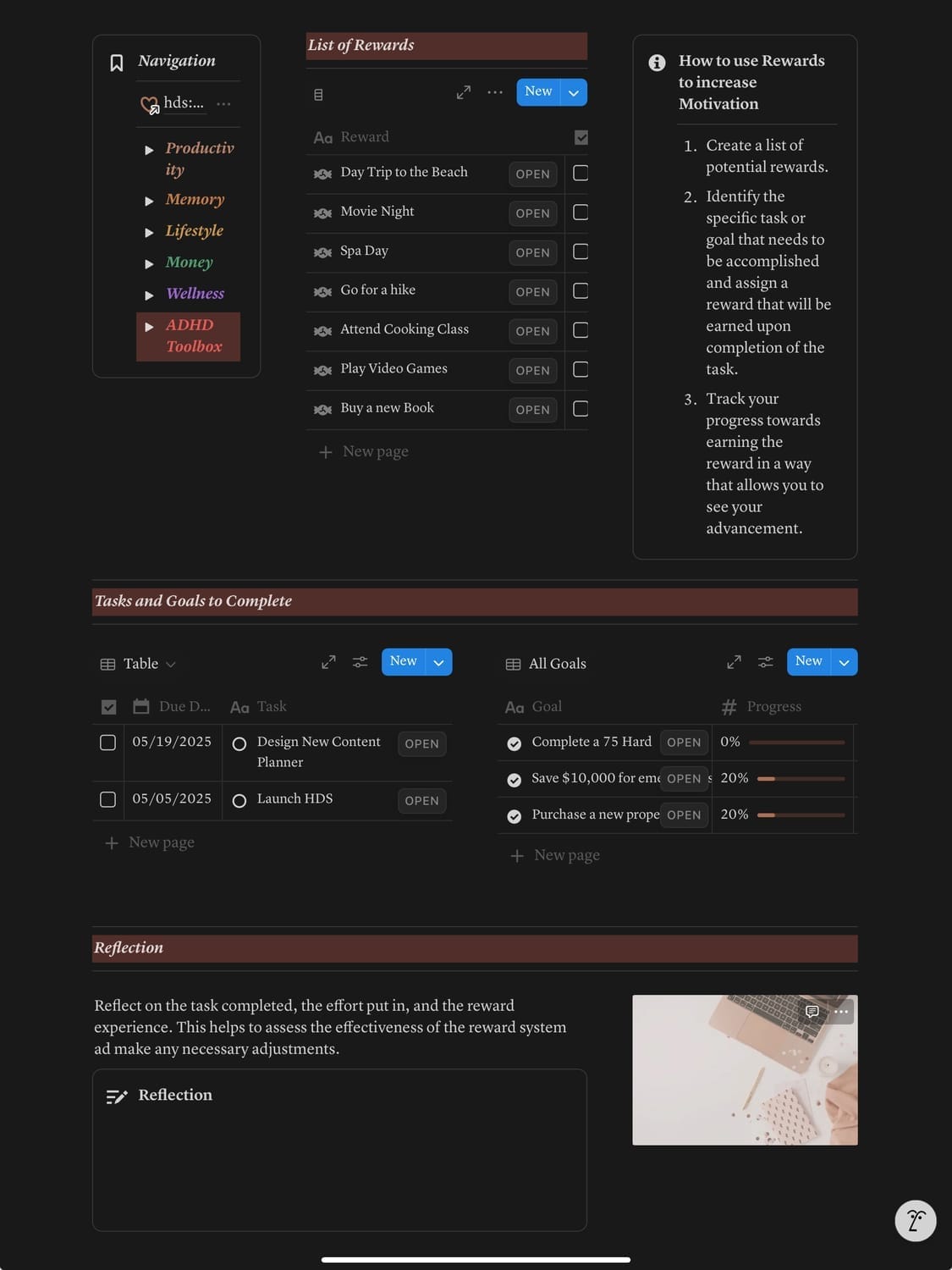 • ADHD Toolbox – Resources, rewards, and time blindness tools to help you stay motivated and focused.